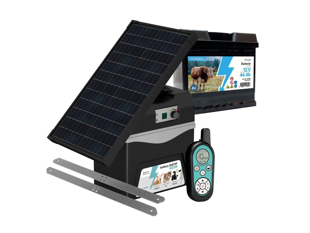 Pokud potřebujete maximální sílu a výkon pro ochranu velkých ploch a zvířat, chytrý bateriový ohradník s výkonem 5 J je tím nejlepším řešením. Tento výkonný RF elektrický ohradník je navržen pro nejnáročnější podmínky, kde je potřeba zabránit úniku zvířat, jako jsou býci, kozy, ovce nebo jelenovitá zvěř, a zároveň ochránit pozemky před divočáky. Výkonný RF bateriový zdroj pro elektrický ohradník 5 J Přenosný chytrý bateriový generátor pro elektrické ohradníky s displejem pro indikaci napětí ohradníku, napětí baterie a úrovně výkonu. Výstupní výkon lze plynule nastavit otočným ovládacím tlačítkem v 19 úrovních. Signalizační LED diody pro funkci zařízení a stav baterie. Zařízení s kombinovaným napájením, lze tedy napájet i adaptérem ze sítě 230 V. Praktický dálkový RF ovladač s dosahem 10 km Malý, lehký a nárazuvzdorný dálkový RF ovladač pro operativní úkony, ON/OFF a přijímání zvukového alarmu na vzdálenost 10 km. Přehledný podsvícený displej ovladače s nejdůležitějšími informacemi o ohradě. Zobrazování kvality signálu, výkonu a aktuální kapacity baterie zdroje. Ovladač s baterií CR2 3V vydrží na celou sezonu. {APP:Ovládejte RF generátory mobilním telefonem; Ušetřete čas a ovládejte elektrické ohradníky pohodlně odkudkoli potřebujete s aplikací fencee Cloud.} Úsporný režim ohradníku a efektivní využívání baterie Mikroprocesor řídí provoz zdroje, přizpůsobuje optimální výkon a zajišťuje maximálně efektivní využívání baterie. Bateriové generátory umožňují regulovat výkon v 19 stupních. Úrovně 1 až 6 fungují jako eco mód. Prostor pro baterii 12 V s kapacitou 44 Ah Ohradník na baterii disponuje velkou přihrádkou pro 12 V baterii s kapacitou 44 Ah. Baterie se umístí dovnitř a je chráněna před UV zářením a povětrnostními vlivy. Osoba přenášející bateriový ohradník, je chráněna před kontaktem s baterií. Zařízení disponuje indikátorem stavu baterie a ochranou proti hlubokému vybití pro co nejdelší životnost baterie. Mobilní voděodolná konstrukce s praktickou rukojetí Elektrický ohradník na aku baterii je navržený pro náročné podmínky a dlouhodobé používání ve venkovních prostorách. Krytí IP44. Vstupní konektor pro připojení síťového adaptéru je vodotěsný. Generátor disponuje integrovanou ochranou před bleskem. Rukojeť pro snadný transport. Solární panel s výkonem 30 W Na bateriový zdroj lze připojit solární panel s výkonem 30 W, který zajistí nepřetržitý provoz kdekoliv na pastvině. Solární panel je upevněn pomocí montážní konzole a lze polohovat směrem ke slunci podle potřeby. Obsah balení: baterie 12 V 44 Ah bateriový RF zdroj 5 J modrý dálkový RF ovladač konzole + solární panel 30 W integrovaný kabel pro připojení zdroje k baterii napájecí adaptér fencee DUO 14 V 1,5 m připojovací kabel 100 cm (očko-srdíčko) zemnící kabel 150 cm (očko-očko) zemnící tyč pro ohradník výstražná tabulka fencee návod k obsluze {INFOBOX:Zboží podléhá speciální dopravě, která je zpoplatněna. Všechny modely bateriových generátorů fencee lze ovládat a nastavovat na krátkou vzdálenost přibližně do 10 m mobilním telefonem také pomocí Bluetooth aplikace fencee Control. Tuto aplikaci pro mobilní zařízení si stáhnete zdarma na Google play a App store.} Získejte maximální přehled s aplikací fencee Cloud V případě, že chcete ovládat ohradník mobilním telefonem na neomezený dosah, pořiďte si ještě centrální zařízení WiFi Gateway. Získáte tak spoustu praktických výhod a budete mít 100% přehled o svých ohradách odkudkoliv a kdykoliv. {PRODUCT-110} {CASE-STUDIES:702;807;515;575;578;607;639;604}