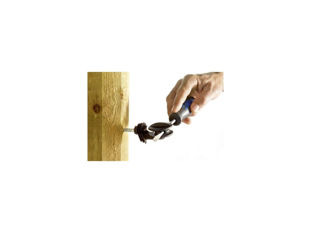 Izolátor by měl být zašroubován celou plochou vrutu až po plastovou část ke kůlu. Pokud tomu tak neučiníte, zapříčiníte namáhání izolátoru.