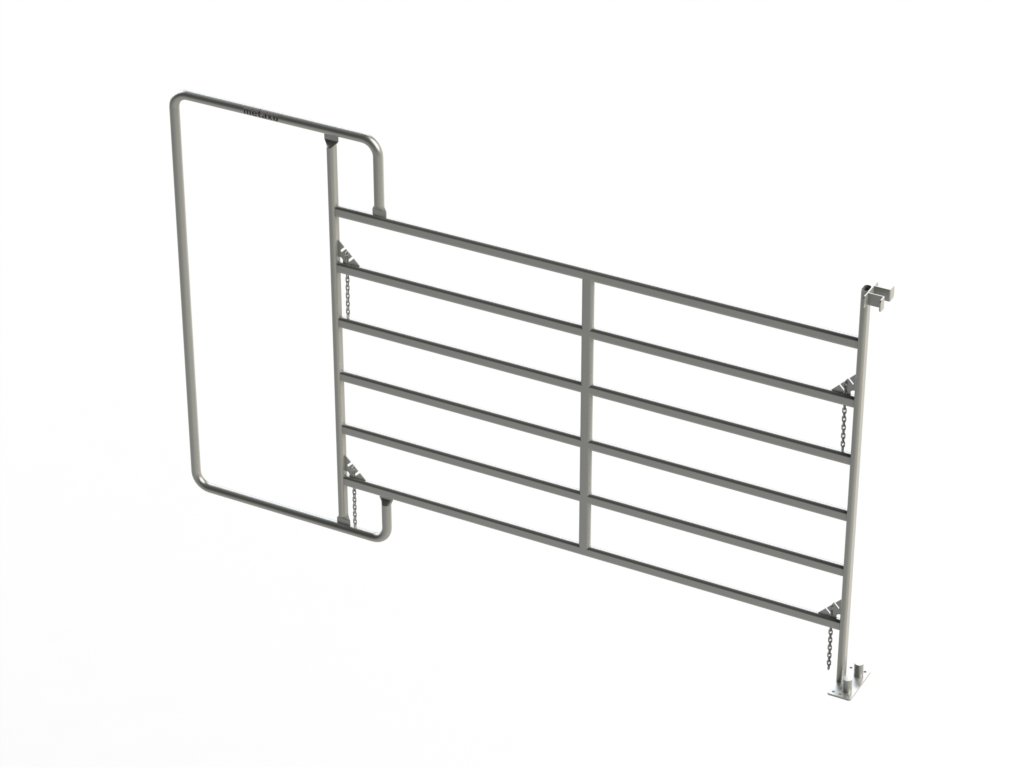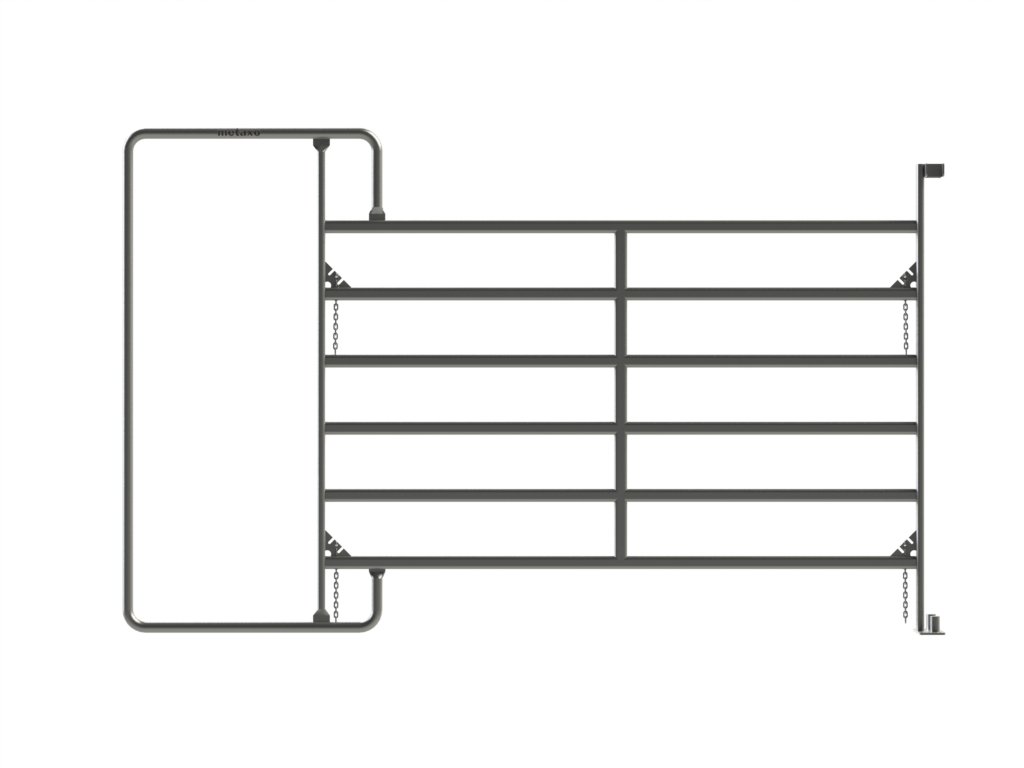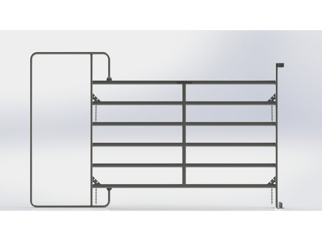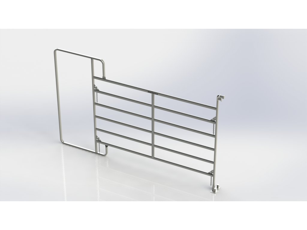 Panel vstupu do uličky je klíčovou součástí naháněcího systému, která se instaluje k posuvným dveřím. Jeho hlavním úkolem je usměrnit pohyb zvířat a zajistit bezpečný, plynulý průchod bez zbytečného stresu. Díky robustní konstrukci a kompatibilitě s ostatními panely Texas zpevňuje naháněcí uličku, což zvyšuje stabilitu celé sestavy. Integrované úchyty a spojovací řetízky zajišťují pevné uchycení a minimalizují riziko deformace při manipulaci se skotem.