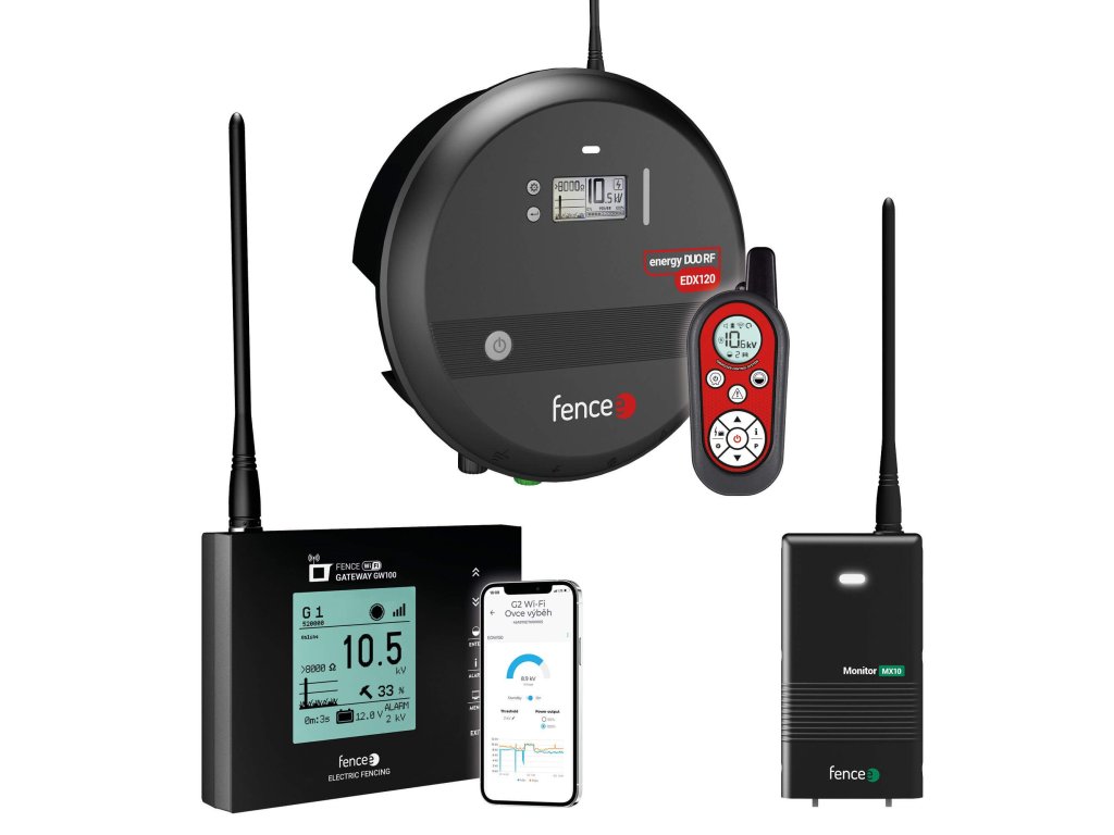 Sada chytrého elektrického ohradníku s RF generátorem a centrální zařízením FENCE WiFi GATEWAY GW100, které umožňuje okamžité připojení zařízení na fencee Cloud a ovládání vzdáleně mobilním telefonem, tabletem nebo počítačem. Obsahuje také praktický dálkový ovladač za zvýhodněnou cenu. Chytrý ohradník fencee s výkonem 12 J Silný kombinovaný generátor fencee energy DUO RF EDX120 je díky svému výkonu 12 J vhodný i pro dlouhé ohrady s délkou instalace až 100 km, v místech kde je třeba zajistit maximální výkon a spolehlivost. Generátor je univerzálně použitelný pro téměř všechny druhy zvířat, jako jsou koně, ovce, skot, prasata nebo kozy. Své využití najde také při ochraně pozemků nebo úrody před lesní zvěří, divokými prasaty. Je vhodný i pro mláďata díky žluté svorce se sníženým výstupem.Tu lze připojit na spodní řadu vodiče ohrady nebo na druhou ohradu, ve které se pohybují menší zvířata nebo mláďata. Centrální ovládací jednotka WiFi Gateway V sadě chytrého elektrického ohradníku je připravena centrální ovládací FENCE WiFi GATEWAY GW100. Pomocí WiFi gateway připojíte zařízení na fencee Cloud a prostřednictvím bezplatné aplikace pro Android a iOS ovládáte spárovaná zařízení kdykoliv a prakticky odkudkoliv na světě. Přes 1 centrální WiFi Gateway můžete ovládat až 12 RF zařízení. K provozu sytému nejsou potřeba žádné registrační poplatky ani SIM karty. Žádné další výdaje, minimalizujete tak vaše náklady na provoz chytrého elektrického ohradníku. Přes fencee Cloud generátory nejen ovládáte, ale také kontrolujete pomocí notifikací, které se ihned zobrazí ve vašem telefonu a na e-mailu. {QUOTE-515} Díky systému chytré farmy fencee získáte maximální přehled nad vaší elektrickou ohradou kdykoliv a odkudkoliv. Zařízení můžete vzdáleně vypínat, ovládat a monitorovat. V případě nastalého problému dostanete okamžitý alarm do telefonu a na e-mail. Všechny výhody a funkce elektrických ohradníků s aplikací fencee Cloud. Monitorující zařízení jako DÁREK V sadě na vás bude čekat také kontrolní Monitor MX10. Po připojení na elektrickou ohradu měří hodnotu napětí. V případě poklesu pod nastavenou hodnotu odesílá upozornění do centrální Gateway, která ihned spustí on-line alarm o vzniklém poklesu napětí na ohradě. Spárovaný Monitor MX10 ovládáte vzdáleně pomocí mobilní aplikace. Kontrolní monitory mají mnoho způsobů instalace, pokud se chcete dozvědět více, přečtěte si článek o různém zapojení kontrolních Monitorů. Praktický dálkový ovladač za zvýhodněnou cenu Dálkovým ovladačem pohodlně a bezpečně zapnete/vypnete napájení elektrické ohrady na vzdálenost až 30 km. Ovladač má podsvícený displej se všemi důležitými informacemi, zvukový alarm a přijímá chybová hlášení, např. při poklesu napětí v ohradě. Více o dálkovém ovladači pro RF generátory. Základní a externí RF anténa Chytrá RF zařízení fencee jsou dodávána se základní anténou, která umožňuje dosah komunikace na vzdálenost 10 km. Pro případ, že potřebujete zlepšit kvalitu signálu a dosah přenosu, využijte možnosti instalace externí antény, díky které zvýšíte dosah až na 30 km. Více o montáži externích antén si přečtěte v našem článku. Kombinované napájení Kombinované RF generátory fencee můžete napájet pomocí adaptéru ze sítě 230 V nebo z běžné autobaterie. Tu lze použít také jako záložní zdroj v případě poruchy nebo výpadku elektrického proudu. Centrální jednotka FENCE WiFi GATEWAY GW100 je standardně napájena adaptérem ze sítě 230 V. Pro případ výpadku proudu je opatřena záložním zdrojem, který dodává napětí až 12 hodin. Obsah balení: generátor fencee energy DUO RF EDX120 centrální ovládací zařízení FENCE WiFi GATEWAY GW100 monitorovací zařízení Monitor MX10 ZDARMA dálkový ovladač pro RF generátory za zvýhodněnou cenu Součástí balení generátoru energy DUO RF EDX120: 1× generátor fencee energy DUO RF EDX120 1× napájecí adaptér 14 V / 2 A 1× základní RF anténa 1× zemnící kabel 150 cm (očko-očko) 1× připojovací kabel 100 cm (očko-srdíčko) 1× bateriový kabel pro připojení energy DUO RF k baterii 1× výstražná tabulka fencee návod k obsluze Součástí balení FENCE WiFi GATEWAY GW100: 1× základní RF anténa 1× napájecí adaptér 14 VDC 1× záložní bateriový zdroj 9,6 V 2× vrut a hmoždinka pro instalaci návod k obsluze Součástí balení Monitoru MX10: 1× základní RF anténa 2× baterie typ C LR14 1× připojovací kabel 100 cm 1× zemnící kabel 150 cm se zemnícím kolíkem 2× stahovací pásky pro snadnou montáž monitoru 1× magnet se šňůrkou návod k obsluze Případové Studie Chytré Farmy fencee Cloud Podívejte se, jak pomáhá Chytrá Farma s aplikací fencee Cloud několika našim zákazníkům, mezi kterými najdete např. zoologickou zahradu, zemědělské družstvo zabývající se chovem skotu, ovčí farmu nebo ranč s koňmi. {CASE-STUDIES:702;515;575;578;604;639;607}