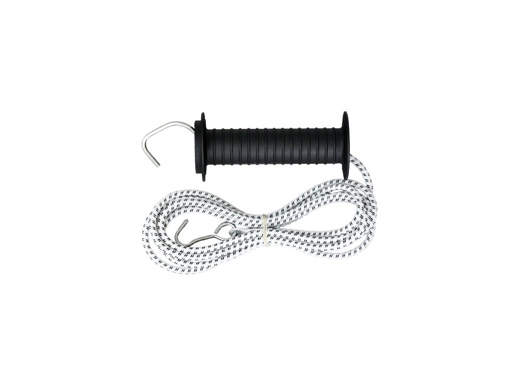 Vchod do el. ohrady s gumovým lanem (guma lze natáhnout až na 4-9 m), ve kterém je vetkán nerezový vodič.