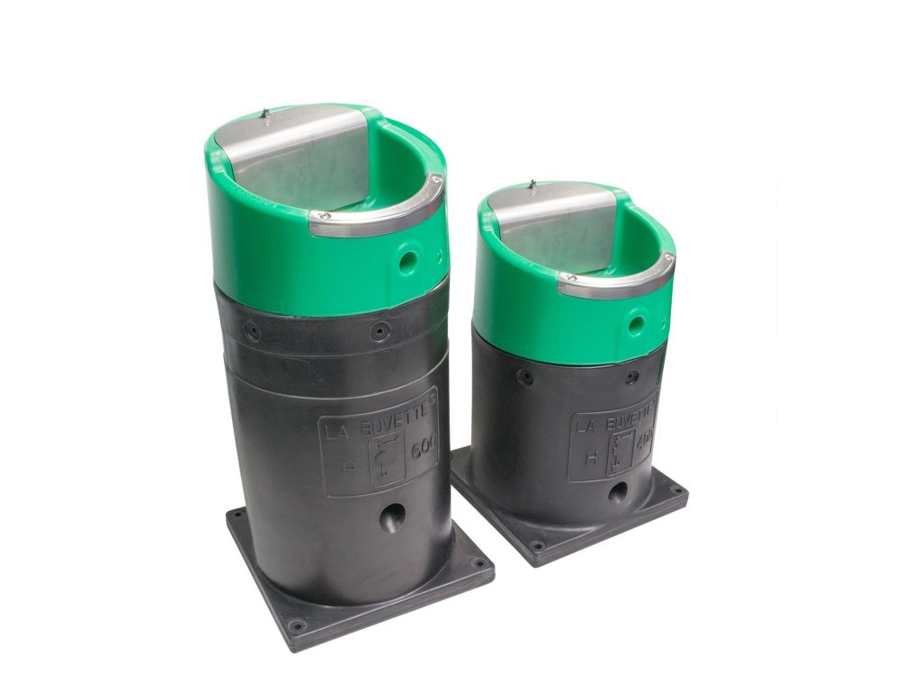 Napáječka LAKCHO je vhodná pro samostatné použití nebo může být instalována s podstavci ve dvou výškách, což umožňuje přizpůsobení různým potřebám zvířat.