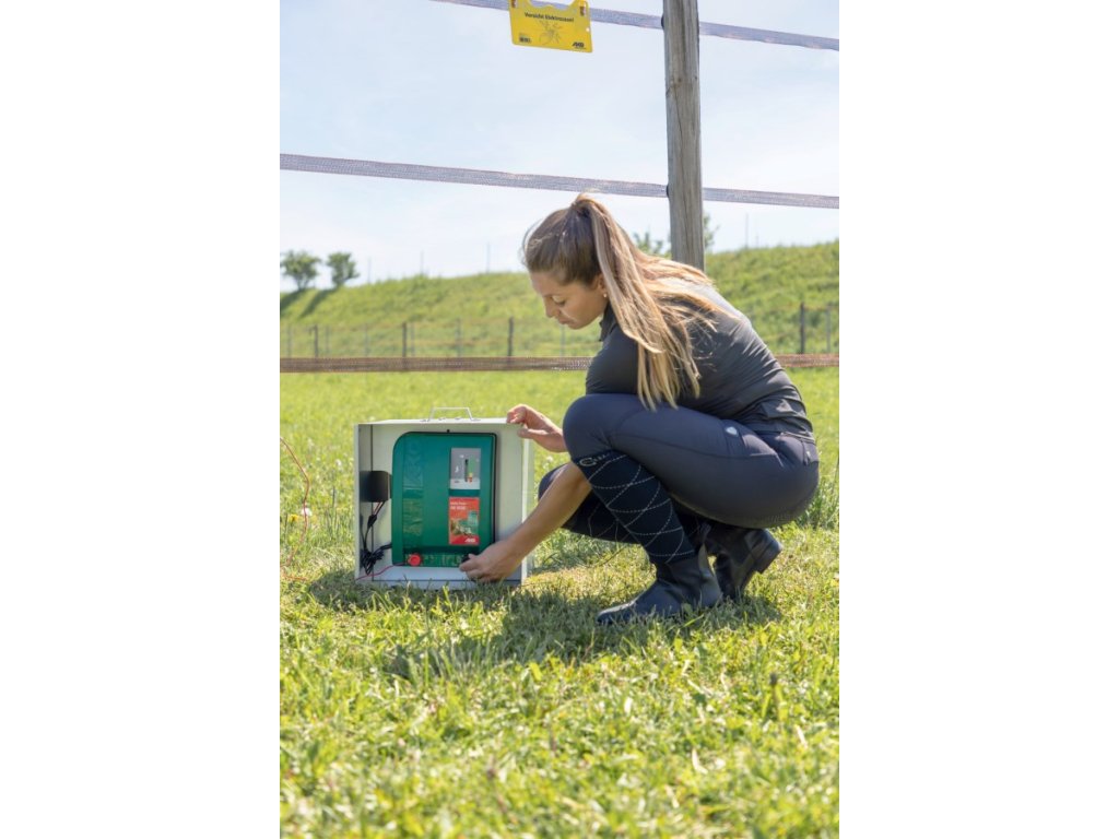 Bateriový ohradník s LED optickou kontrolou napětí a uzemnění pomocí led kontrolek. Je určen pro skot, koně, ovce a divokou zvěř. Napájení z 12 V baterie (lze doplnit solárním panelem), max. napětí ohradníku 12 400 V, napětí ohradníku při odporu 500 Ohm je 9 000 V, vybíjecí energie ohradníku 5 J.
